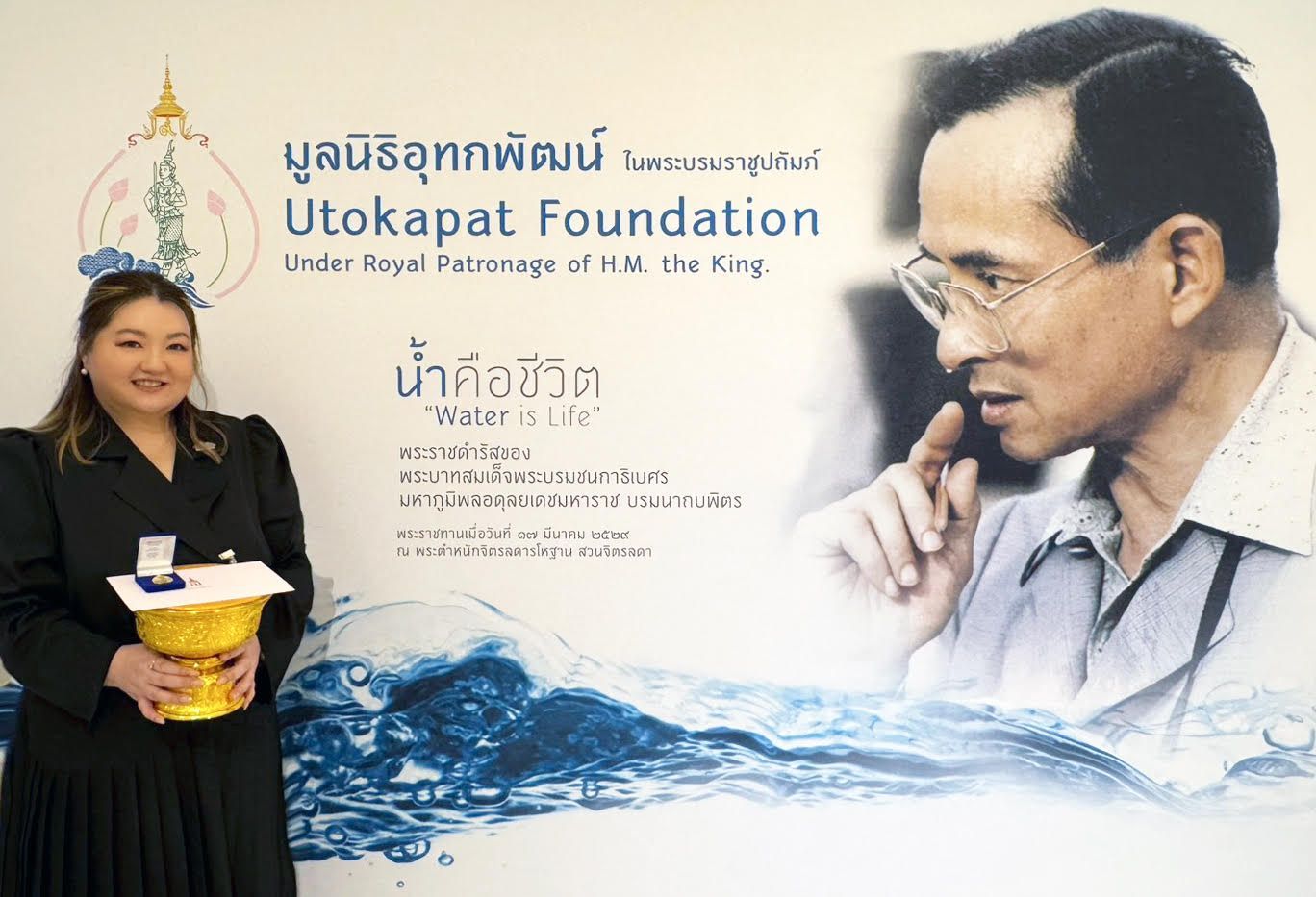 During the occasion, Mr. Sumet Tantivejkul, Chairman of the Utokapat Foundation under Royal Patronage, together with the Foundation’s Board of Directors and related officials, respectfully received Her Royal Highness. Her Royal Highness graciously granted an audience to Ms. Suwimol Assarasakorn, Chief Marketing Officer of Kabinburi Industrial Zone Co., Ltd., recognizing the company’s support for the foundation’s endeavors, who respectfully received a commemorative pin of the Utokapat Foundation bestowed by Her Royal Highness.