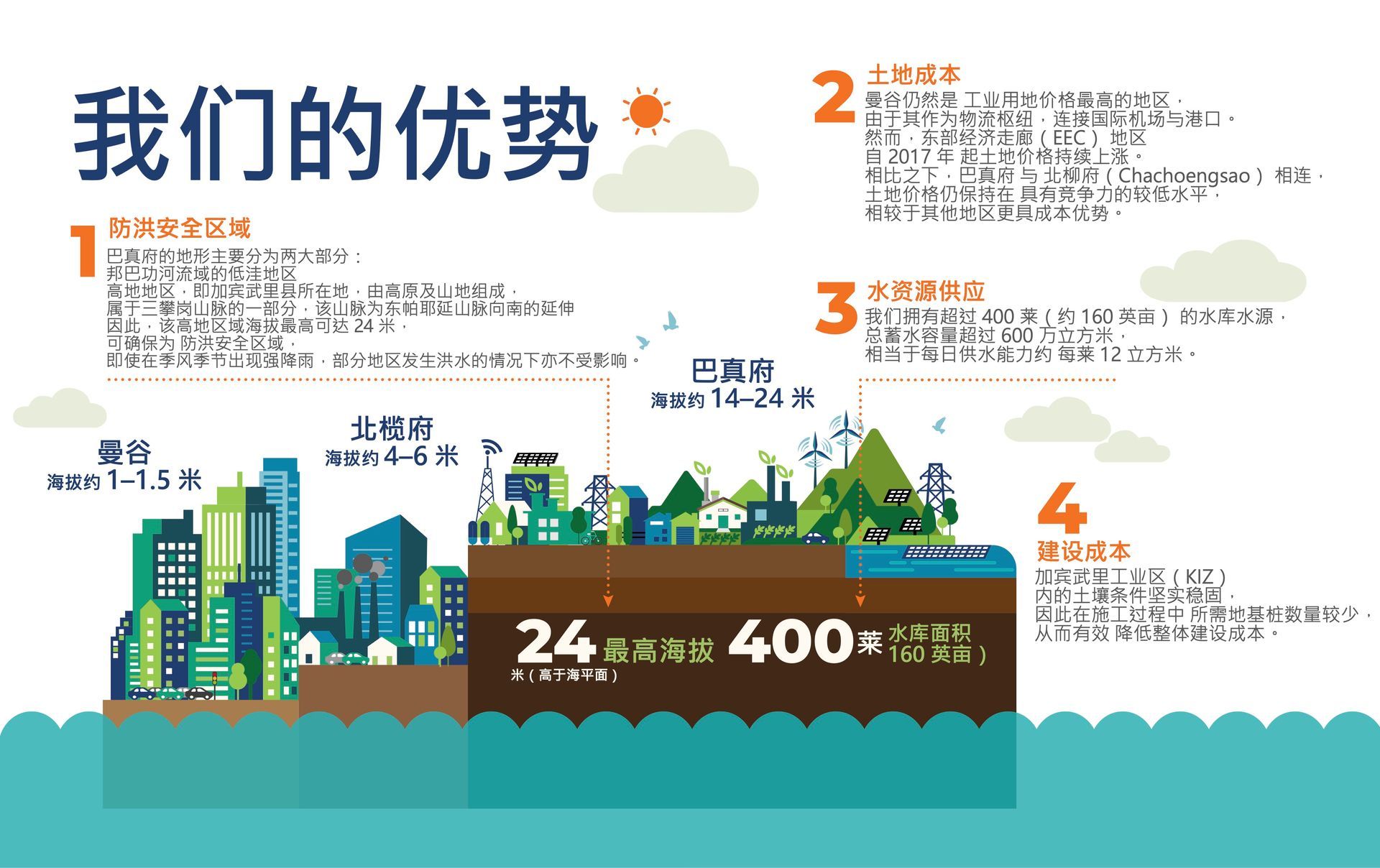 此外,该地区毗邻东部经济走廊(EEC)。该经济特区涵盖北柳府(Chachoengsao)、春武里府(Chonburi)和罗勇府(Rayong),在区域经济、物流体系及产业发展方面具有重要的战略意义。