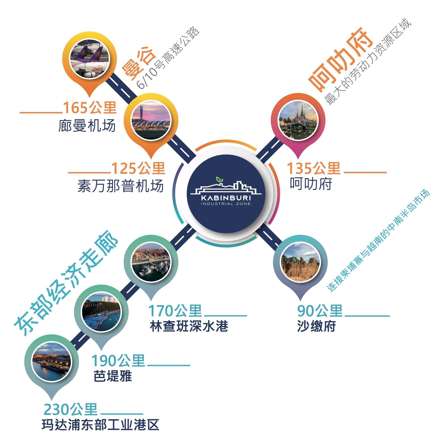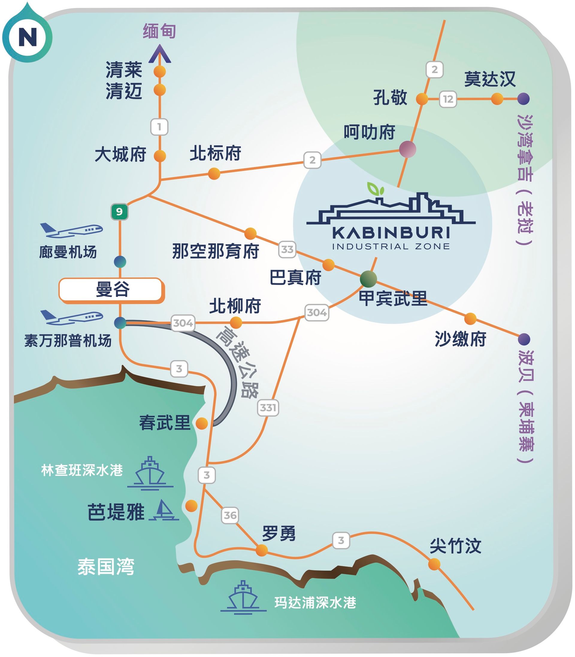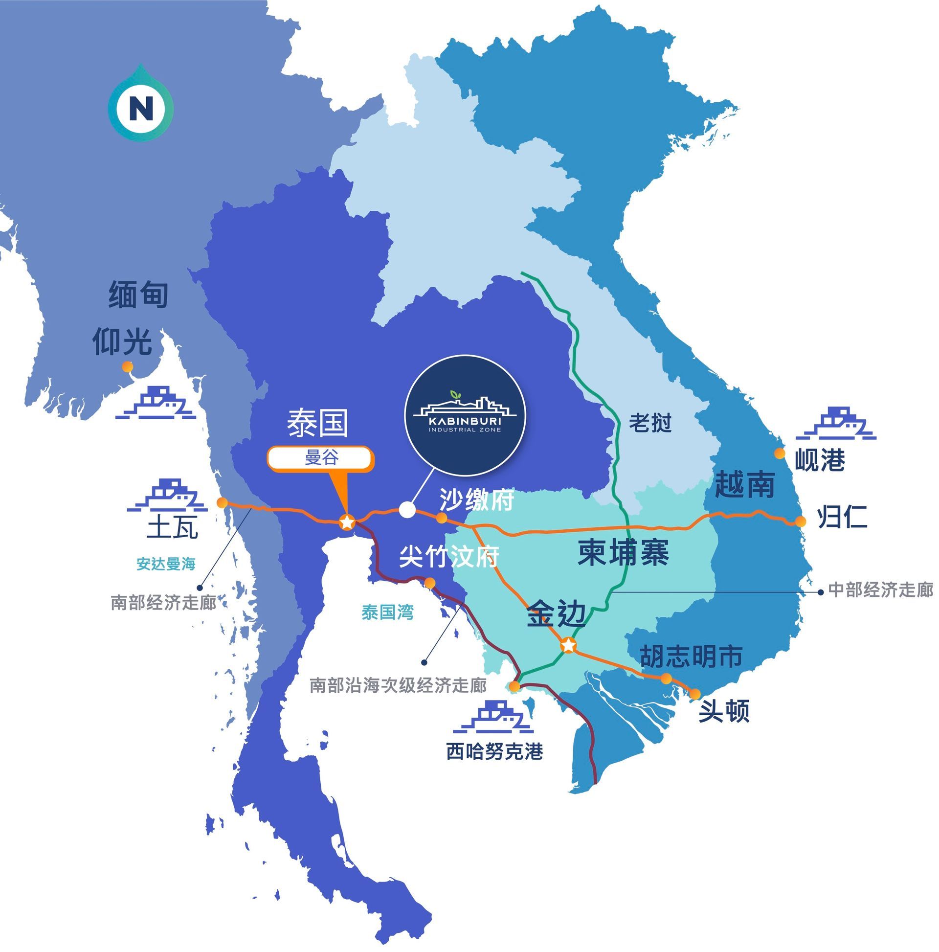 加宾武里县位于 GMS 核心区域(大湄公河次区域下游),具备连接区域内主要贸易通道的显著区位优势,可便捷接入多条跨区域经济走廊,包括:
